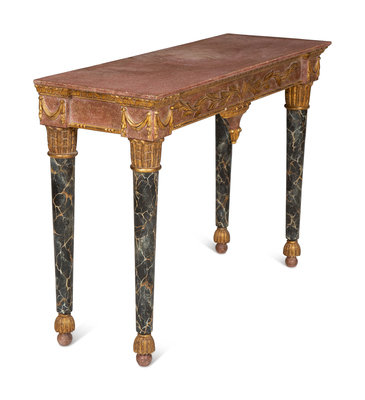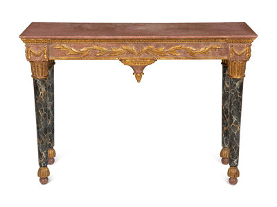 An Italian Painted Faux Marble and Parcel Gilt Console Table
