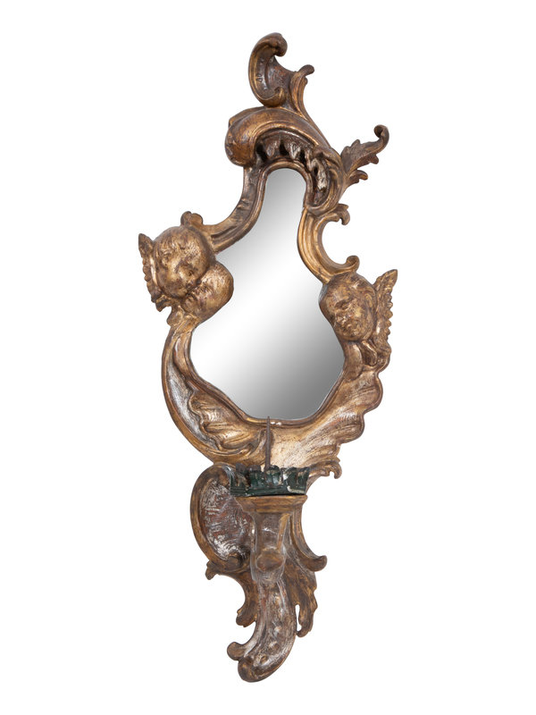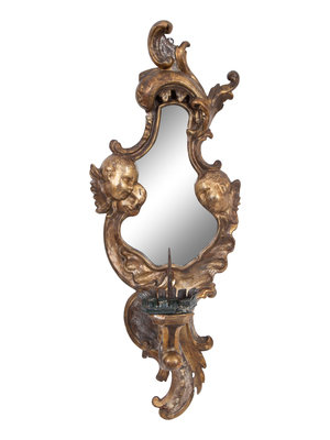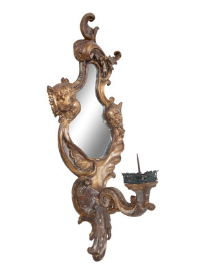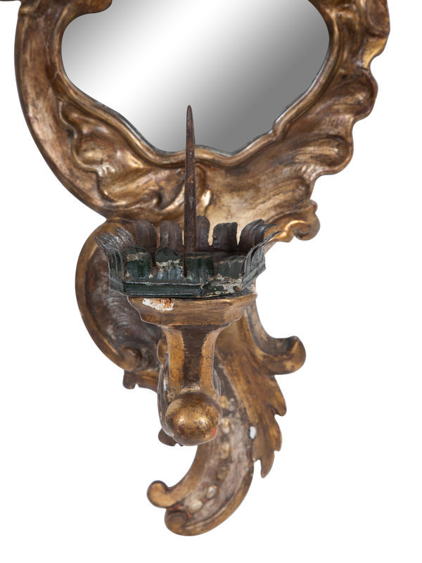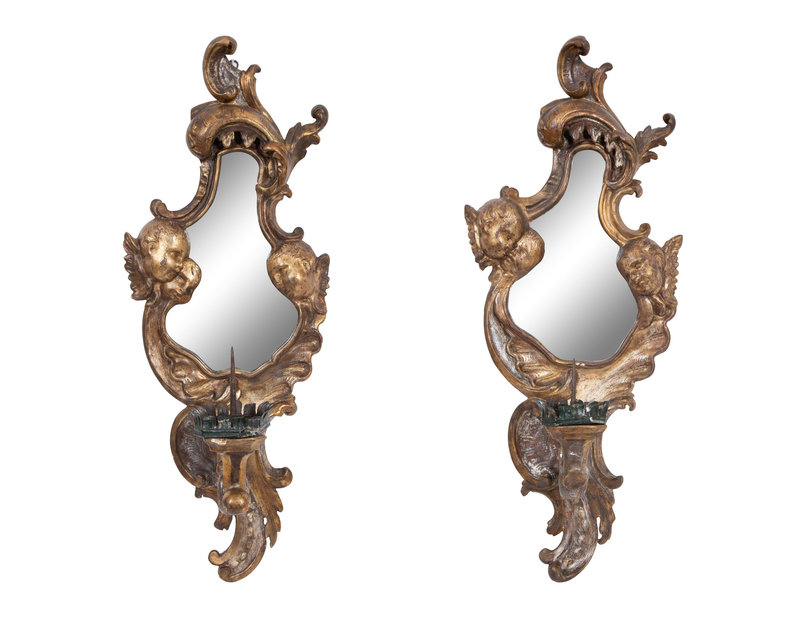 A Pair of Italian Giltwood Mirrored Single-Light Sconces