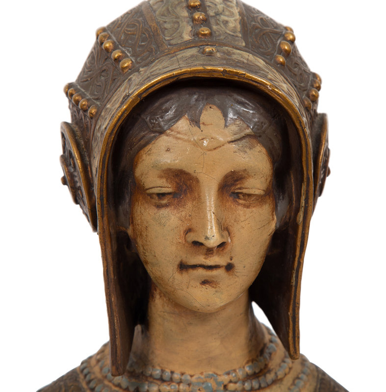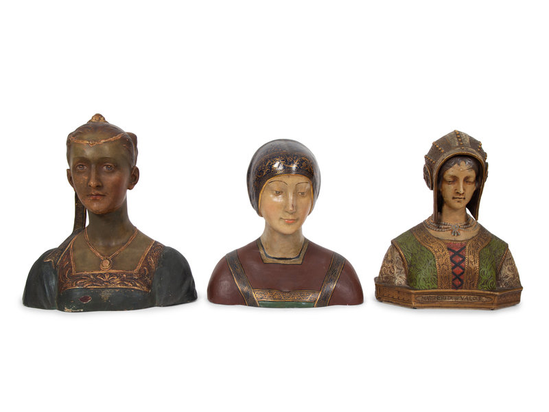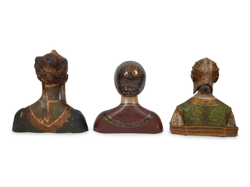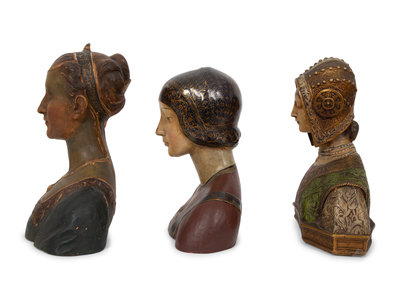 Three Italian Painted and Parcel Gilt Terracotta Busts of Renaissance Women