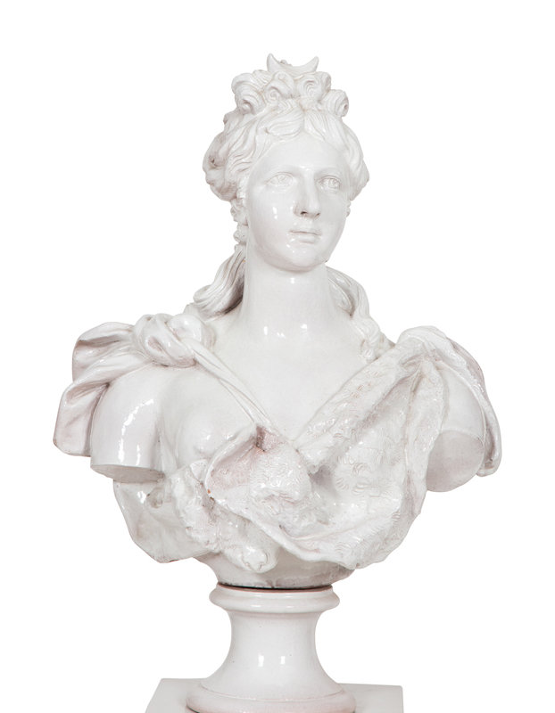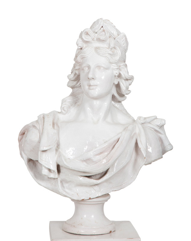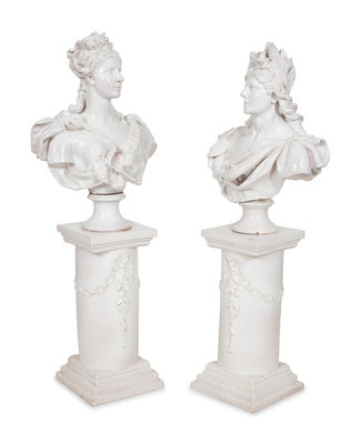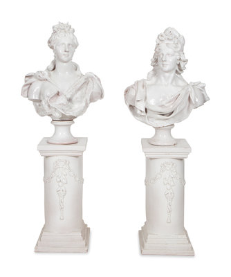 Height of taller bust 36 inches; height of pedestals 30 inches.