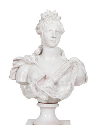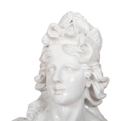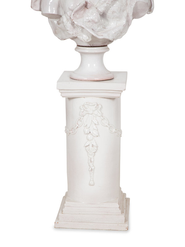 A Pair of Italian Glazed Terracotta Portrait Busts on Neoclassical Style Pedestals