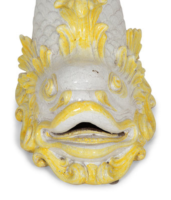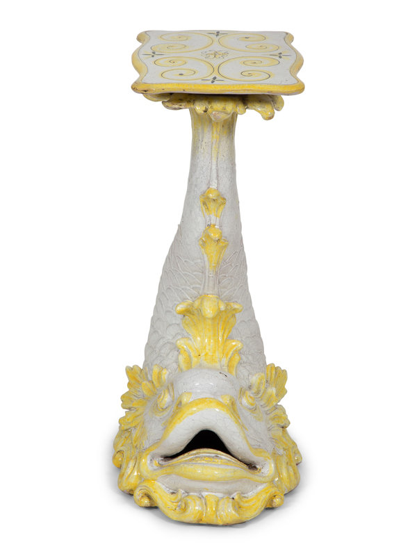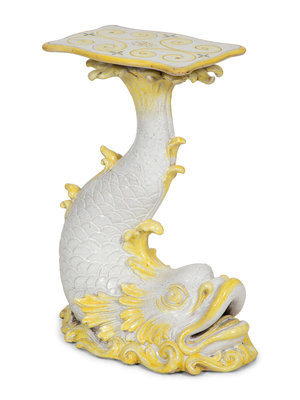 An Italian Glazed Ceramic Dolphin Base Side Table