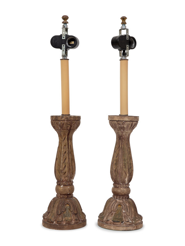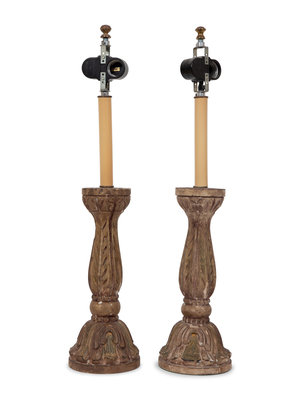A Pair of Italian Carved Giltwood Candlesticks Mounted as Lamps