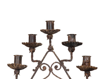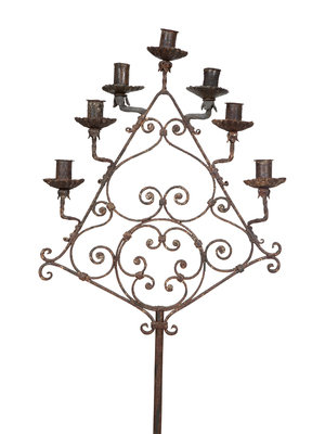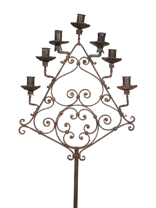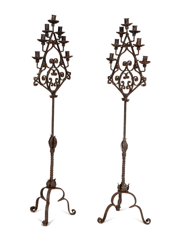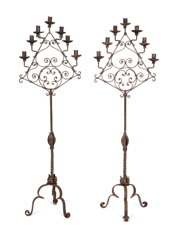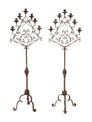 A Pair of Mizner Wrought Iron Seven-Light Floor Candelabra