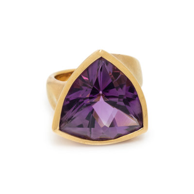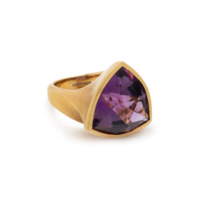 ANGELA CUMMINGS, YELLOW GOLD AND AMETHYST RING