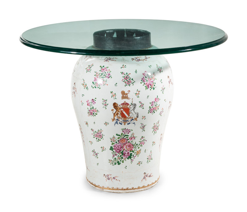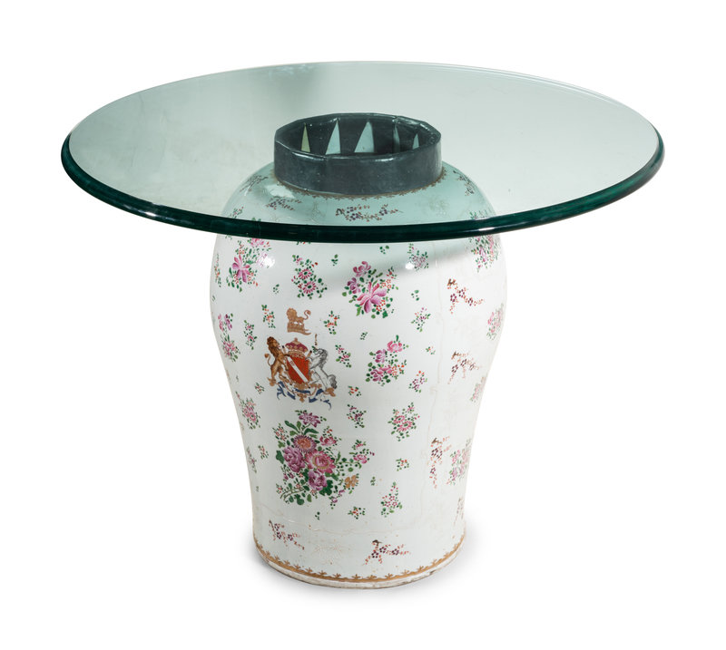 A Large Samson Porcelain Vase Converted to a Glass-Top Table