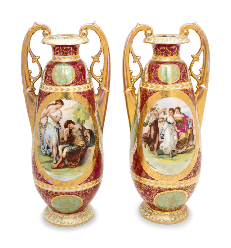 A Pair of Vienna Style Porcelain Vases