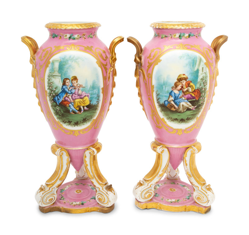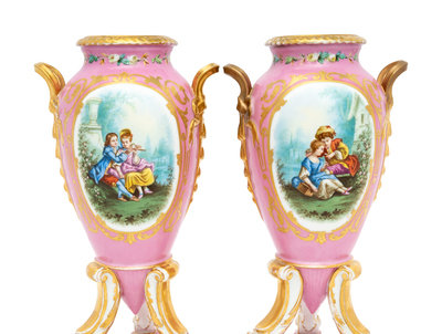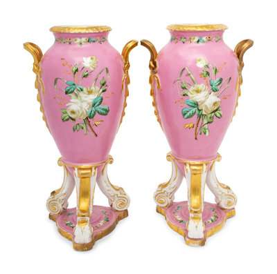 A Pair of Continental Porcelain Tripod Vases