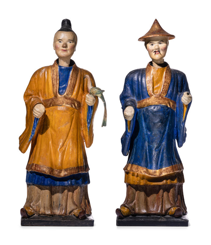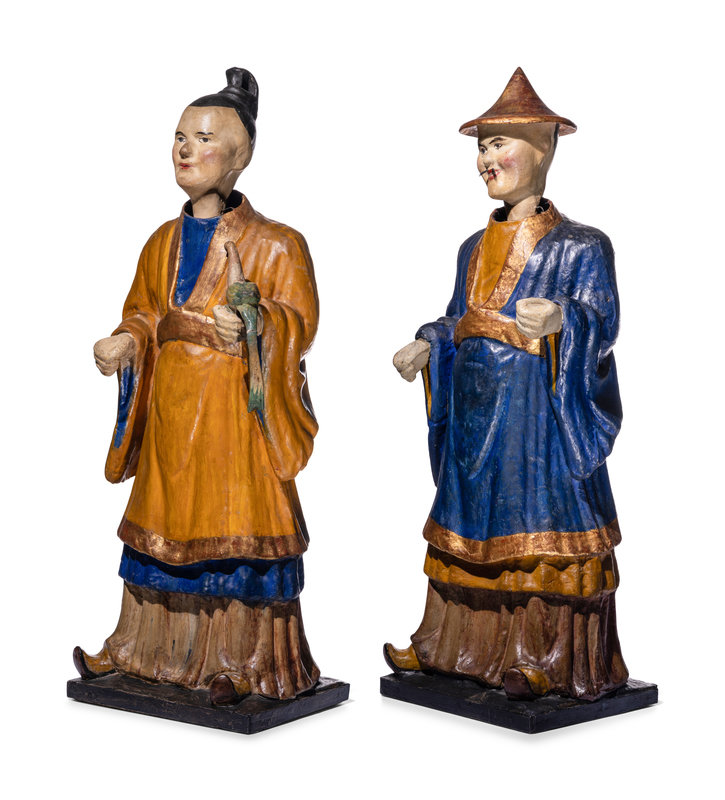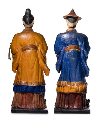 A Pair of North Italian Polychrome Painted Papier-Mâché Nodding Head Figures
