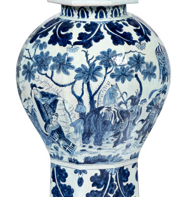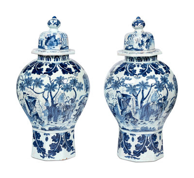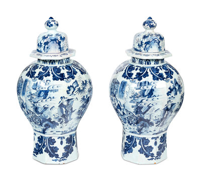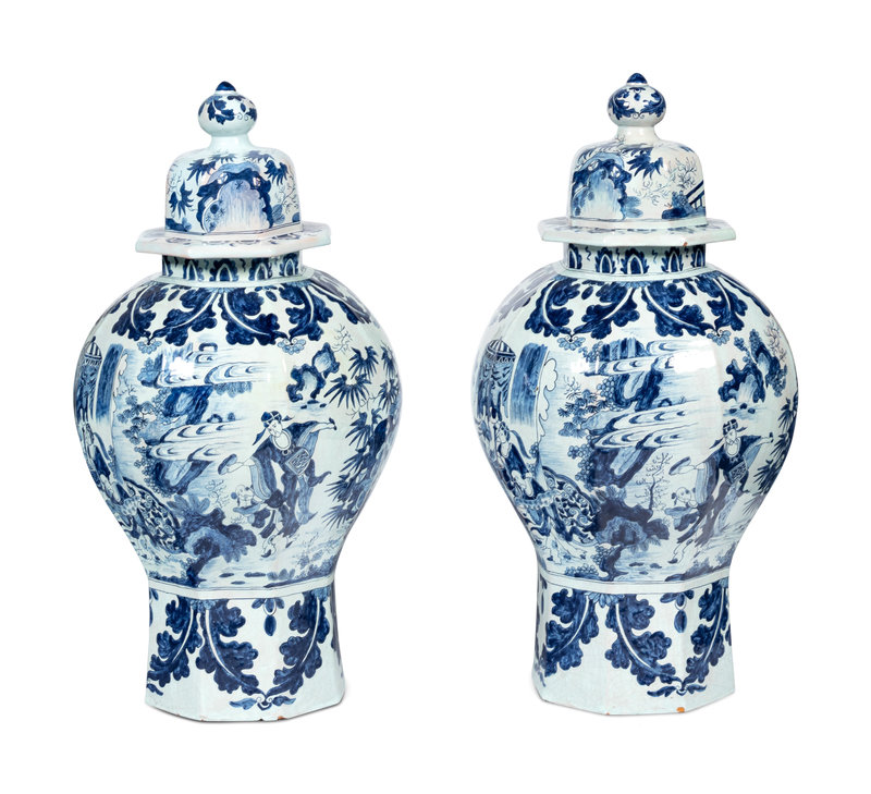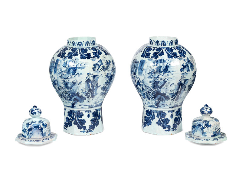 A Pair of Delftware Vases and Covers