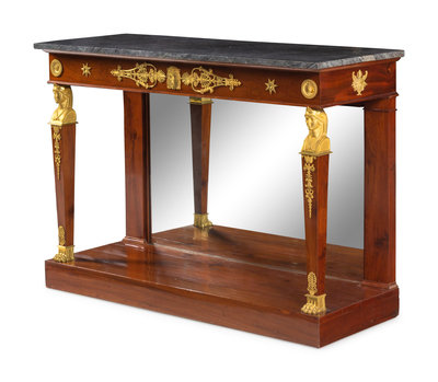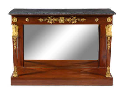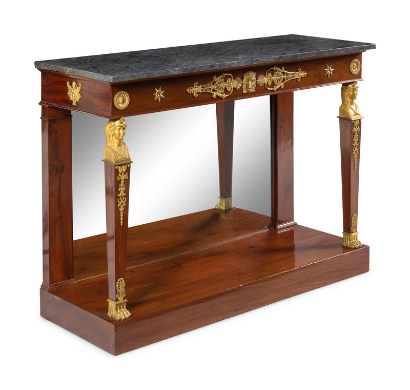 An Empire Gilt Bronze Mounted Marble-Top Mahogany Console