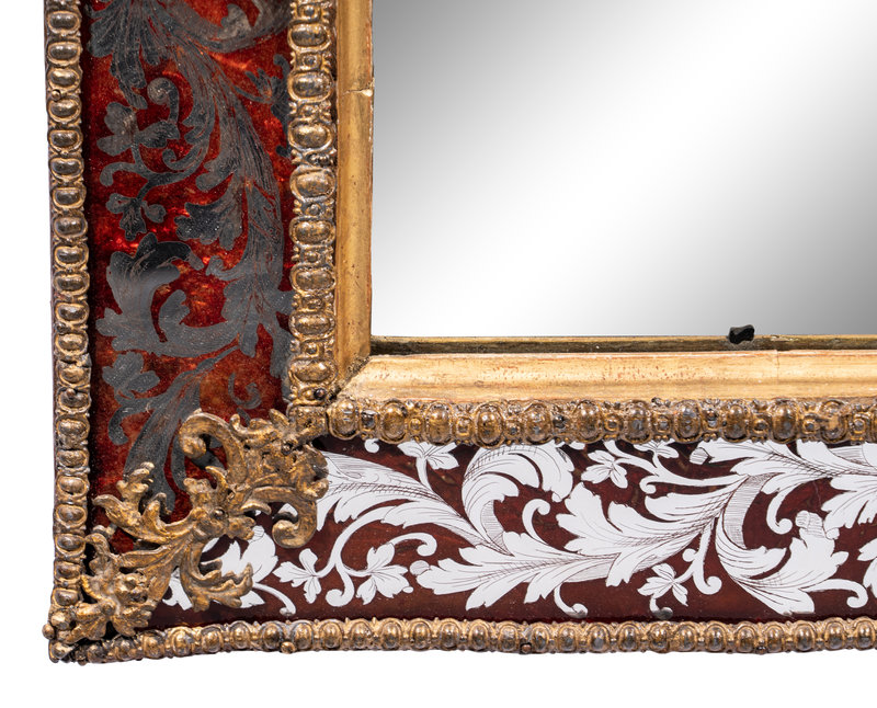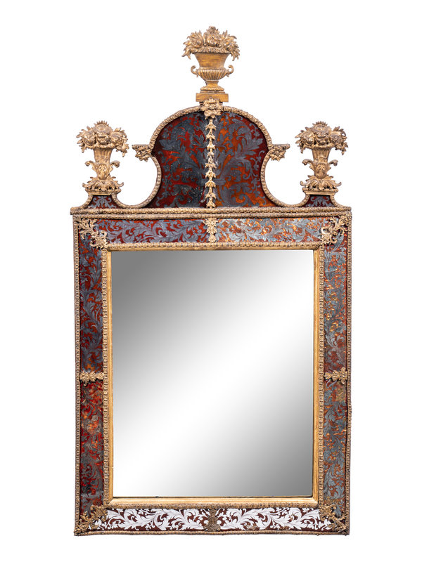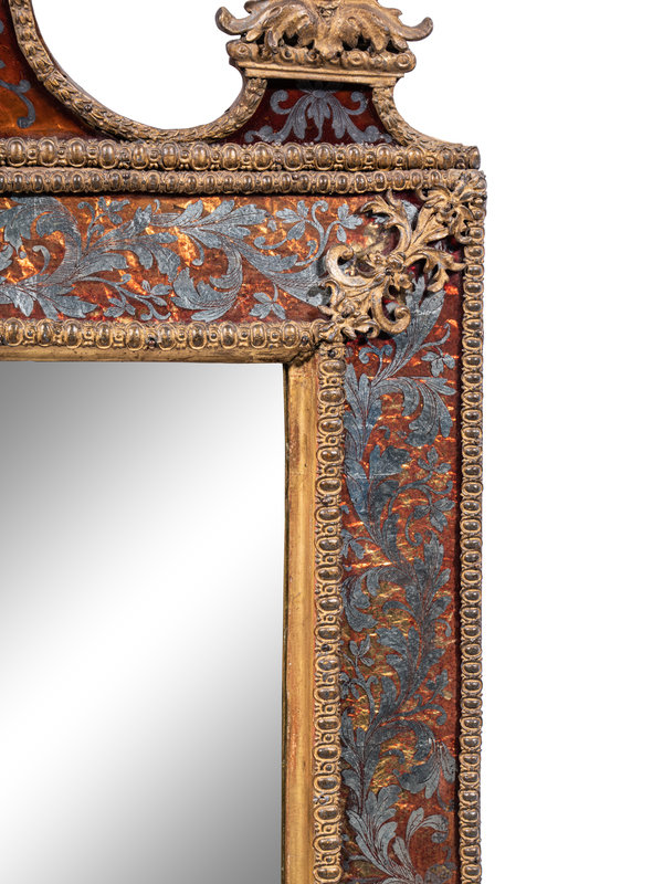 A Swedish Baroque Verre Églomisé and Giltwood Mirror