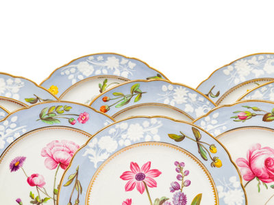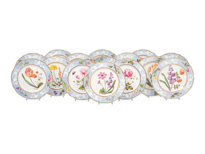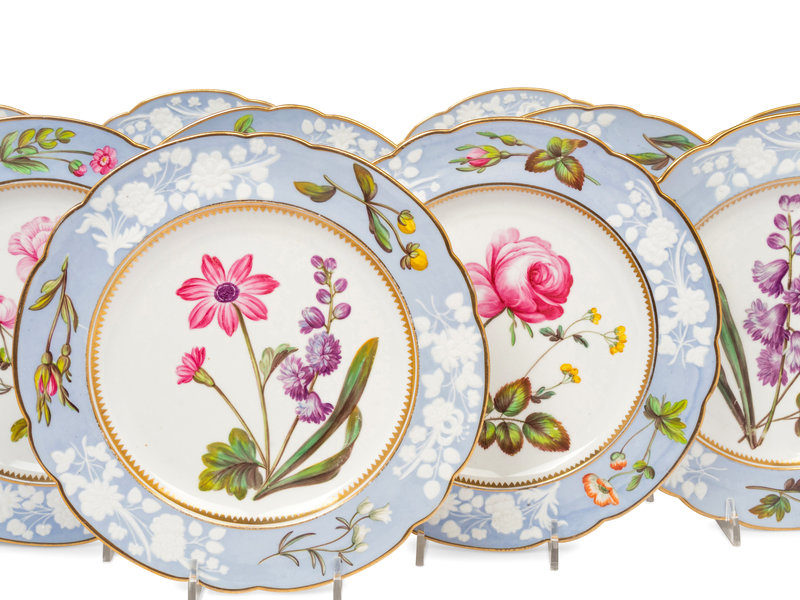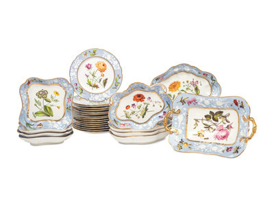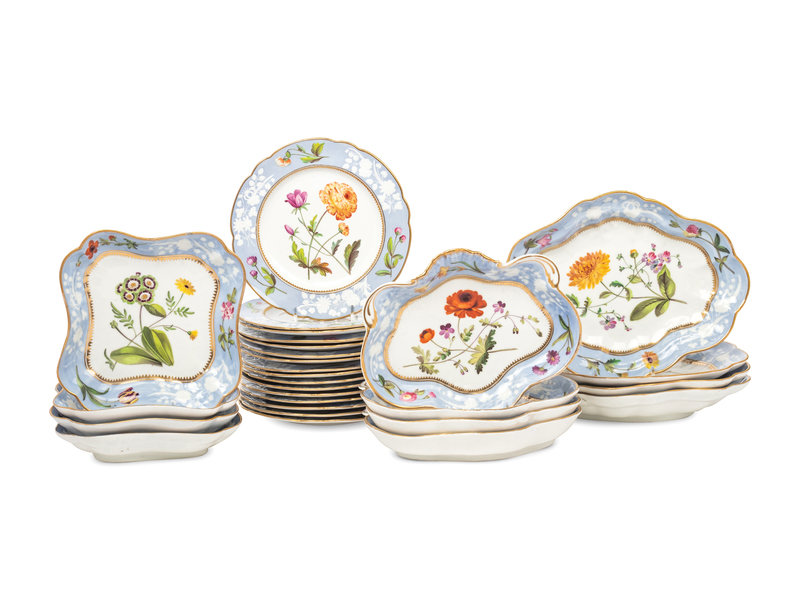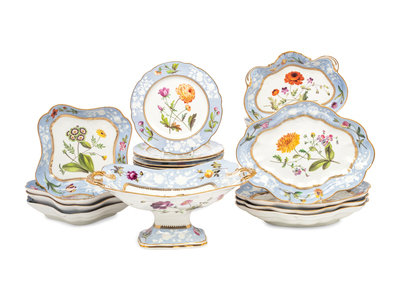 A Spode Pale Blue-Ground Botanical Porcelain Dessert Service