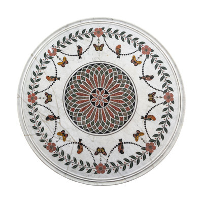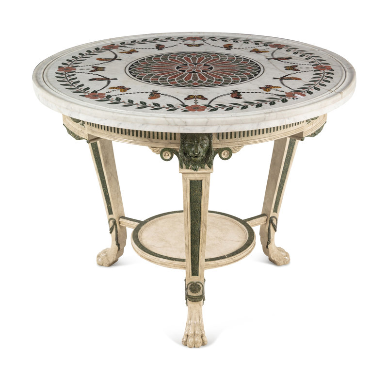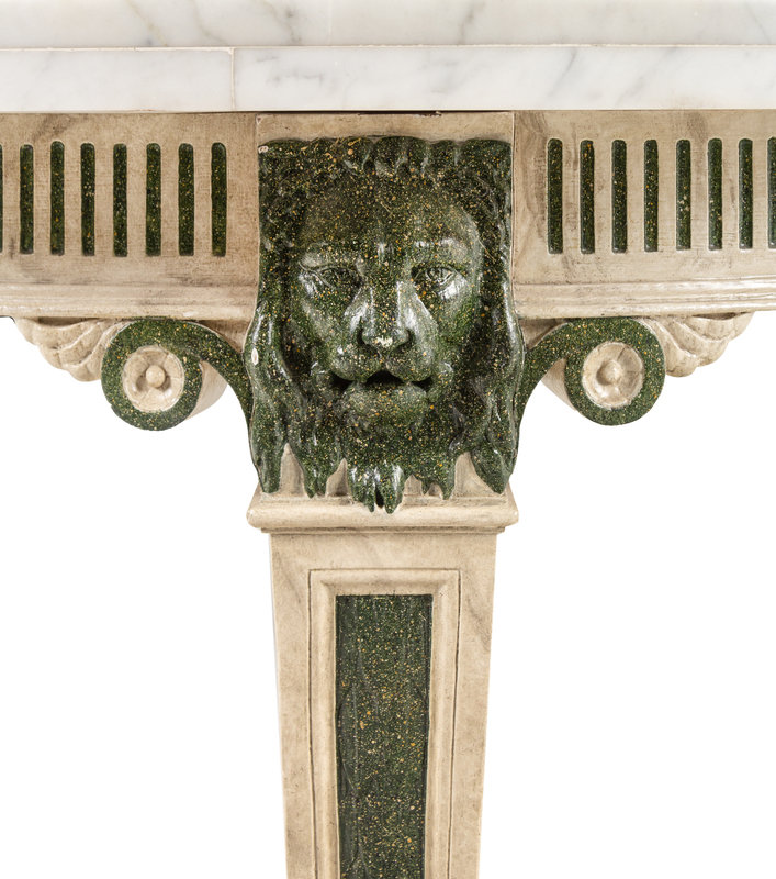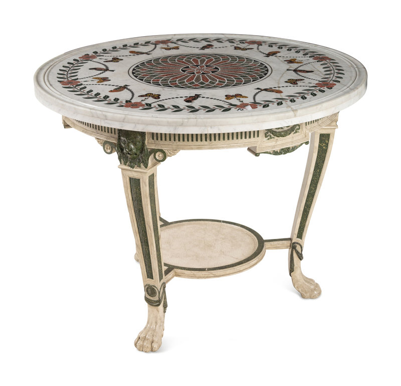 A Neoclassical Green and White-Painted Scagliola and Marble-Top Table