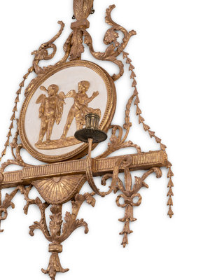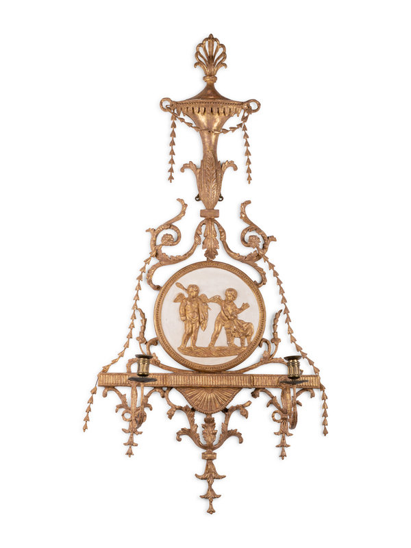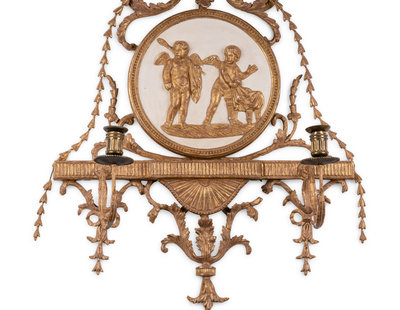 A George III Cream-Painted and Parcel-Gilt Two-Light Wall Appliqué
