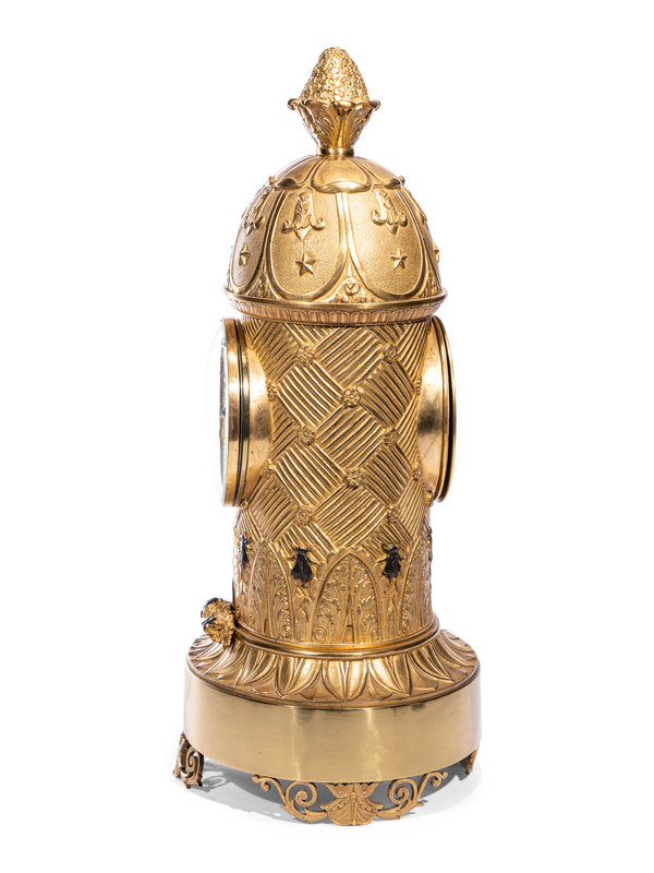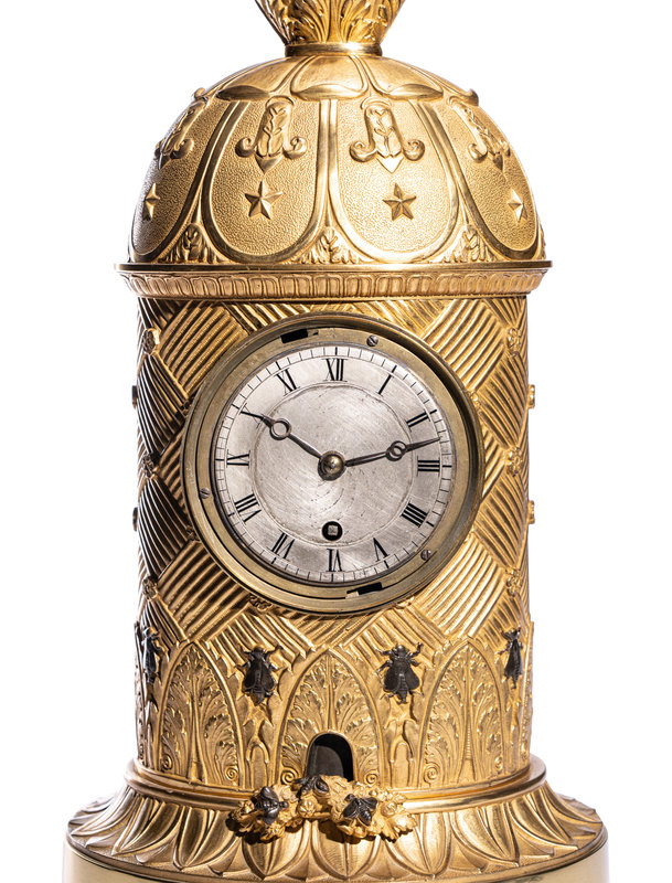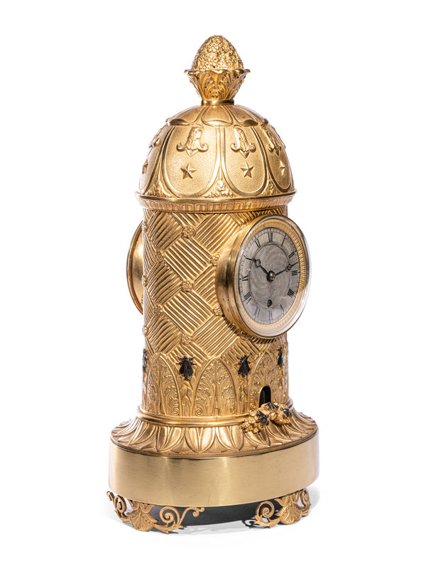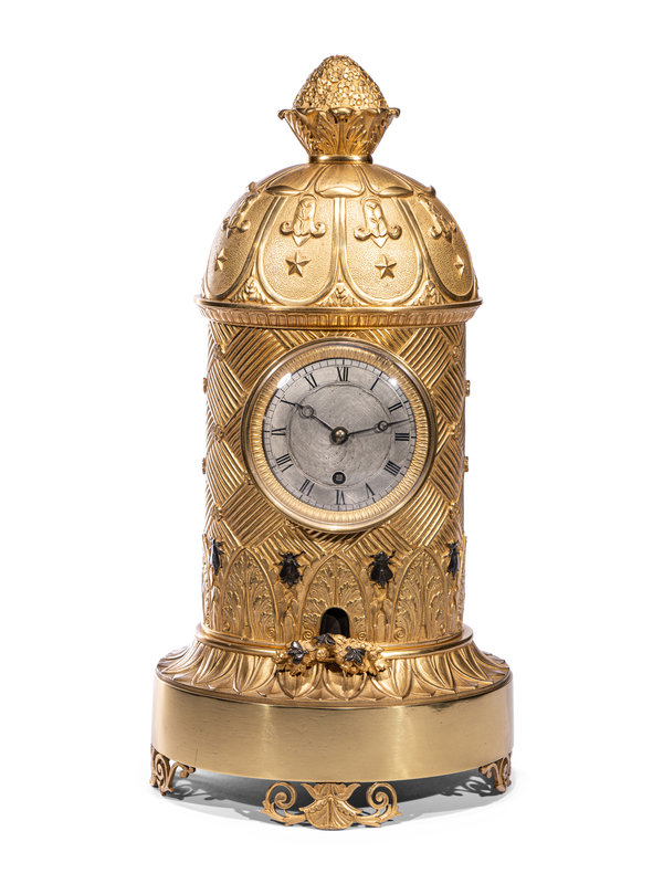 A Charles X Ormolu and Patinated Bronze Beehive Clock