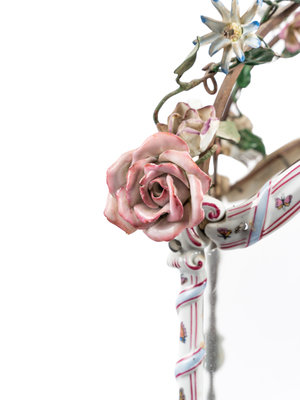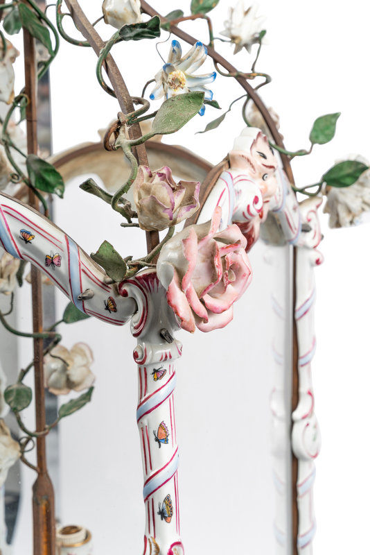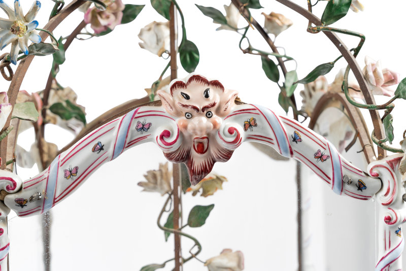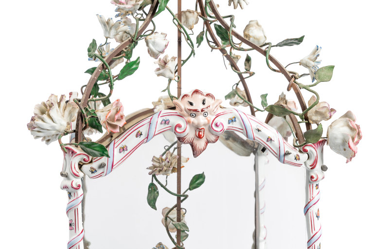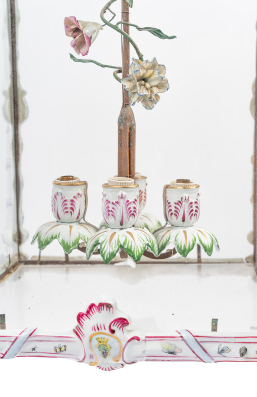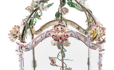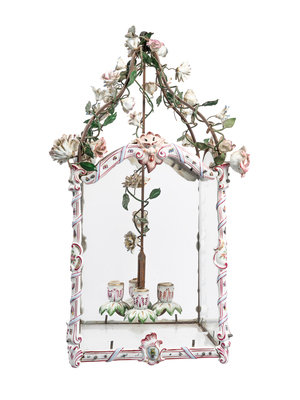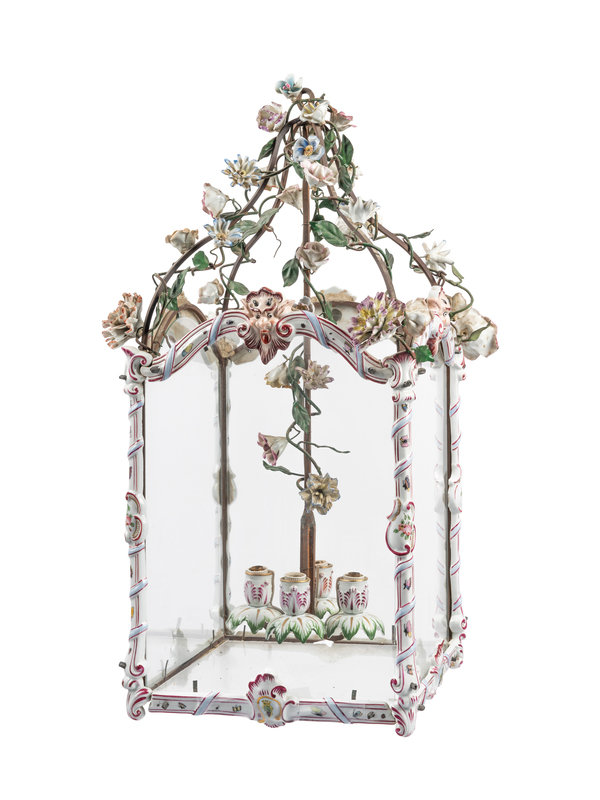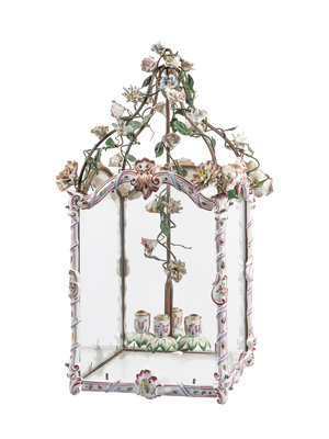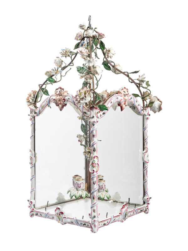 A French Gilt Metal, Porcelain and Tôle Four-Light Lantern