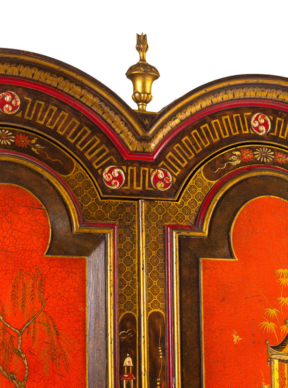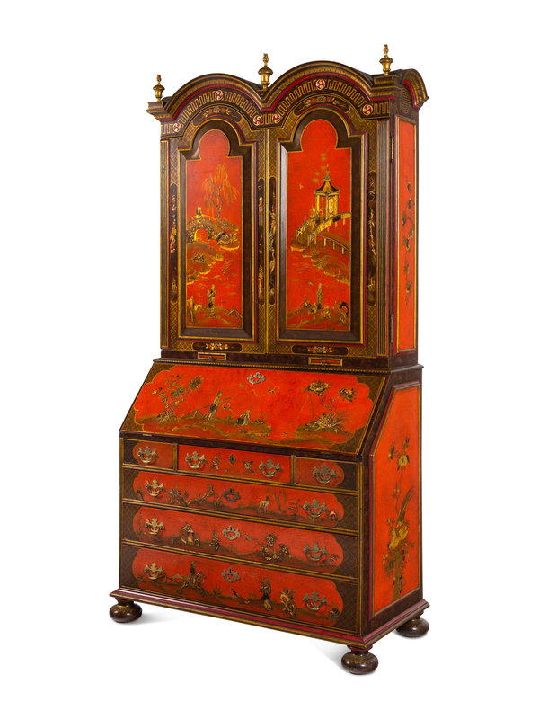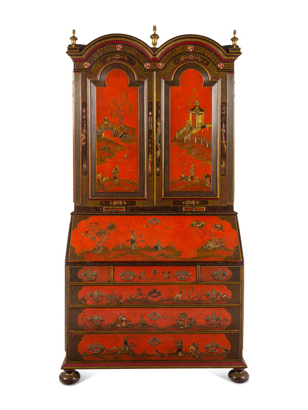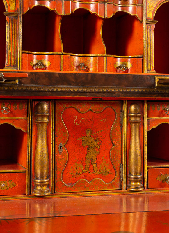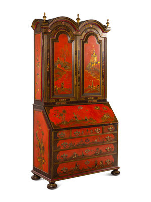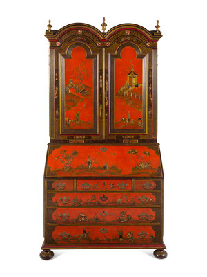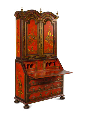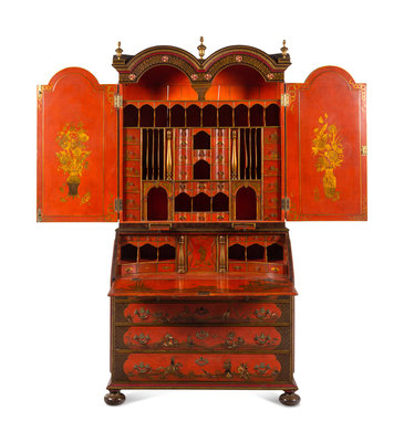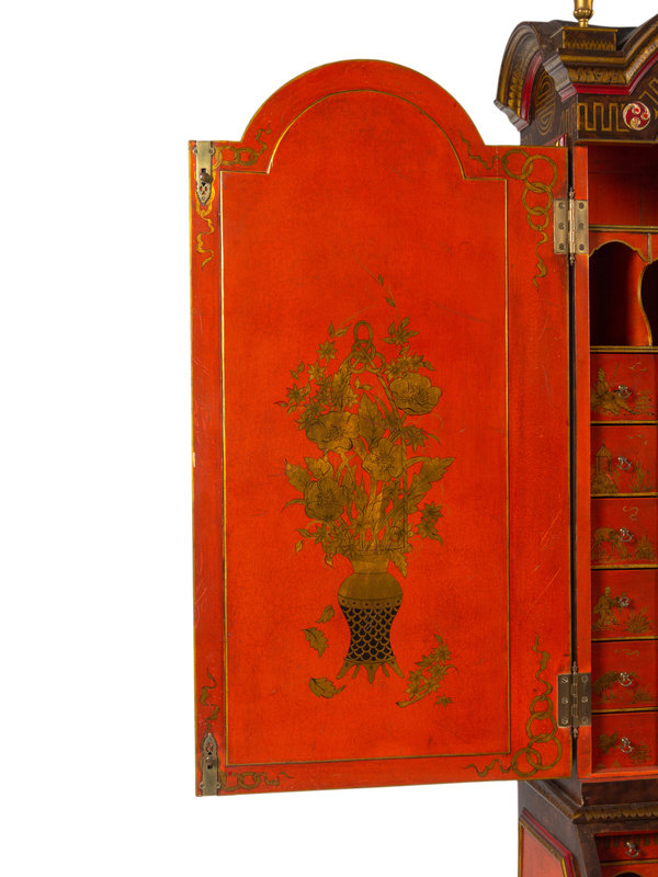 A George I Style Red, Gilt and Polychrome Japanned Bureau Cabinet