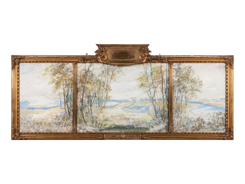 Left and right panels: 13 1/2 x 17 3/4 inches (sight); center panel: 23 1/2 x 17 3/4 inches (sight).