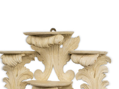 redecorated, with traces of an earlier polychrome painted scheme; slight variations to carving.