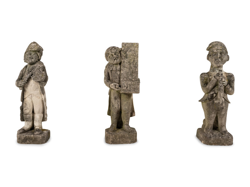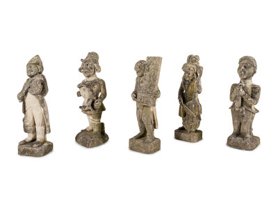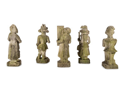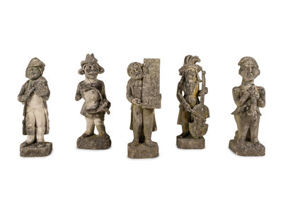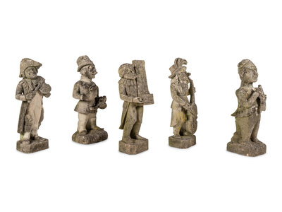 Five French Limestone Garden Figures of Musicians