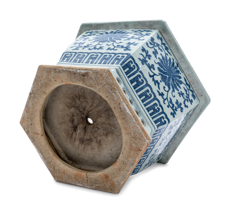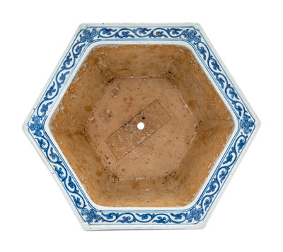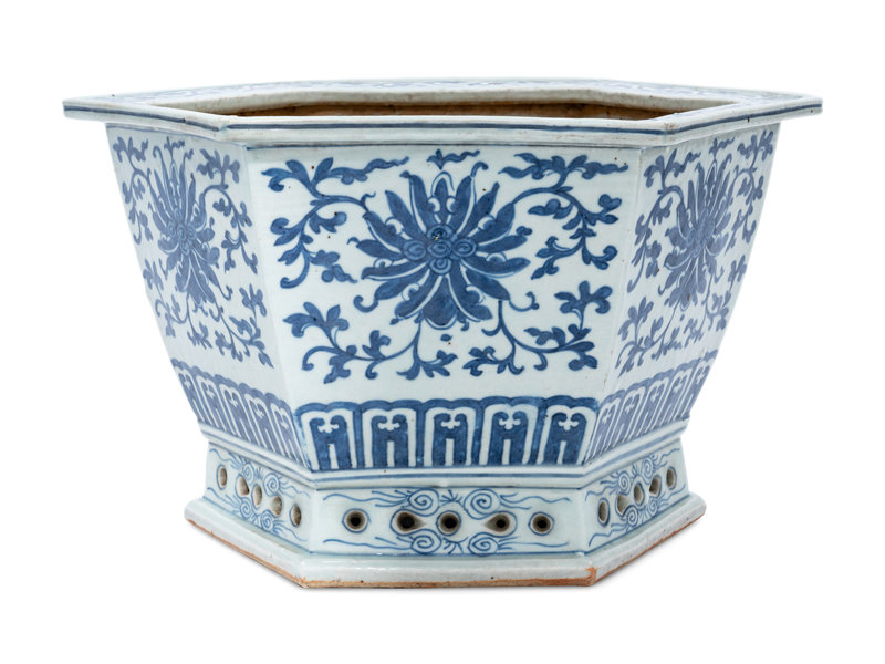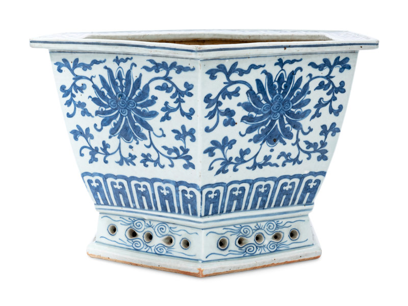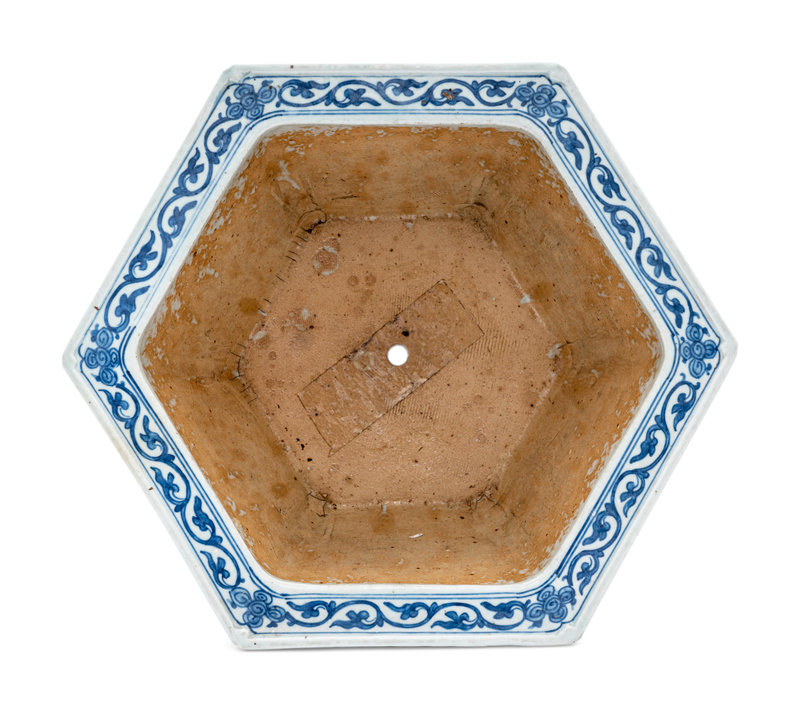 A Chinese Blue and White Porcelain Hexagonal Jardinière