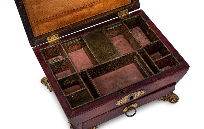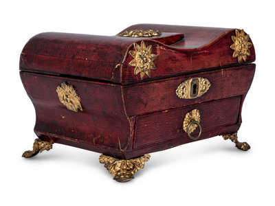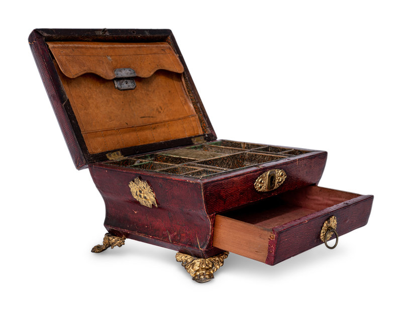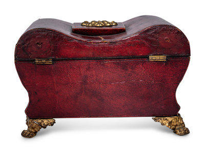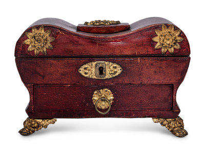 A Gilt Metal Mounted Leather-Veneered Jewelry Casket