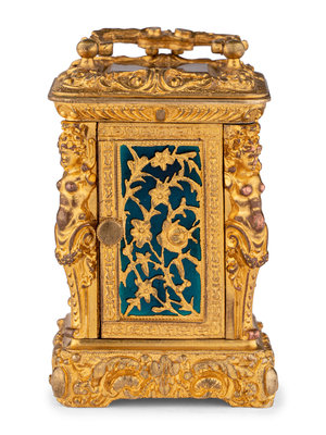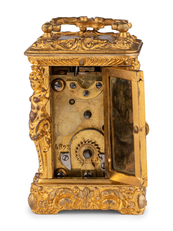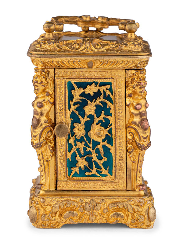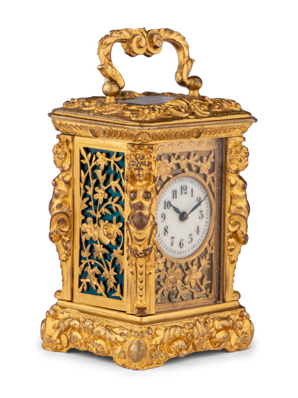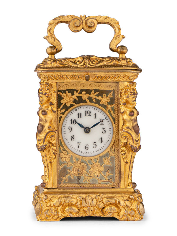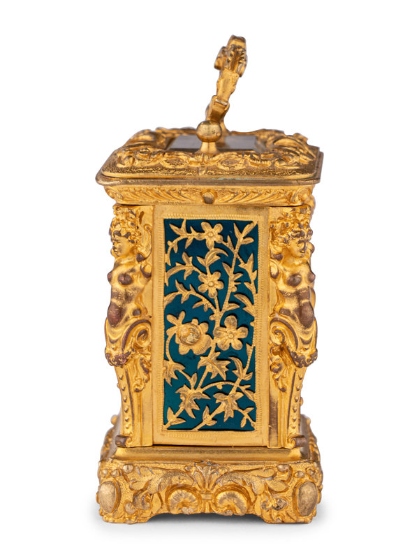 A French Miniature Gilt Bronze Eight-Day Carriage Clock