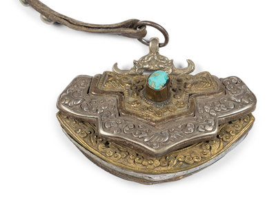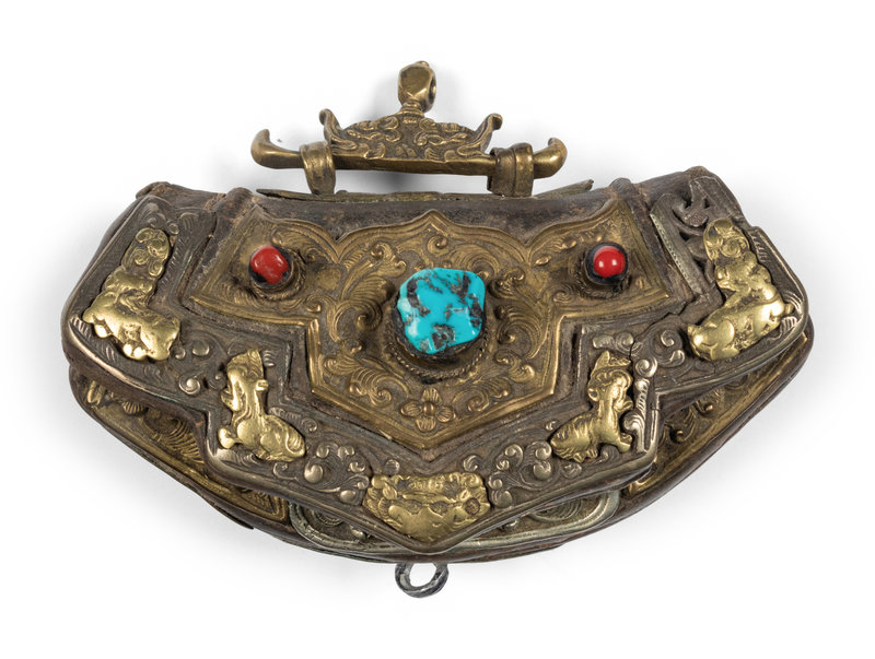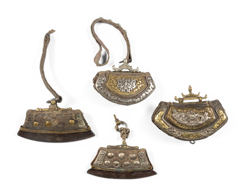 Four Tibetan Silver and Leather Pouches
