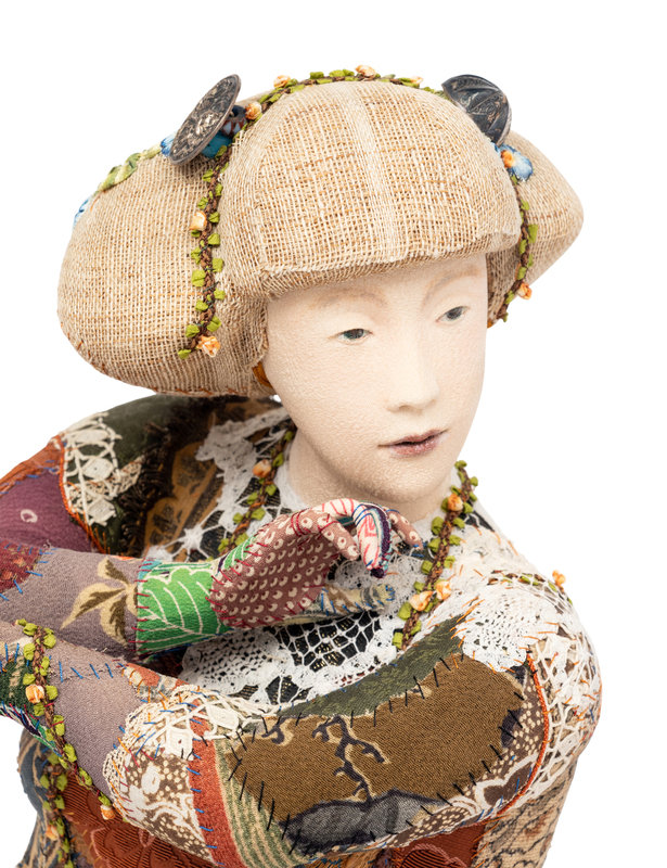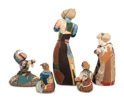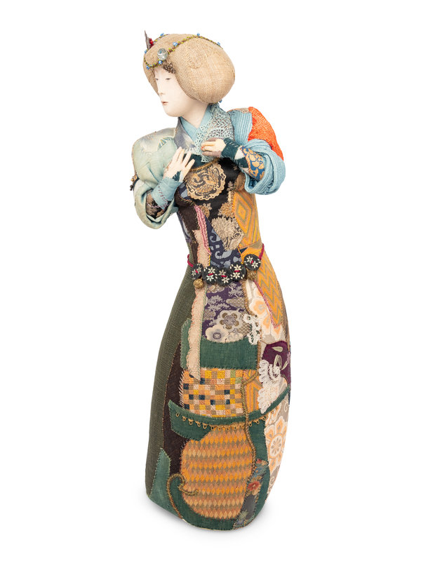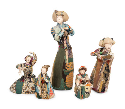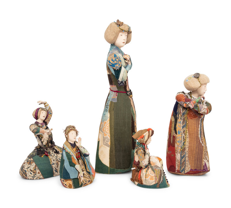 A Group of Five Contemporary Japanese Patchwork Embroidered Figures