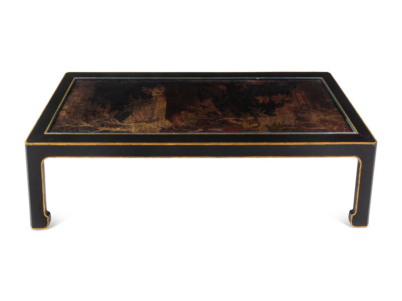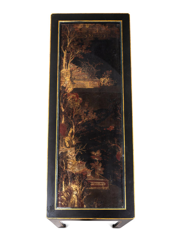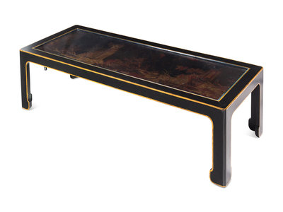A Chinese Export Black and Gold Lacquer Panel-Inset Low Table