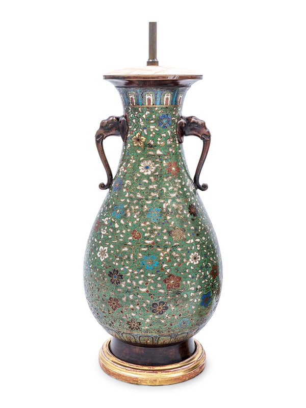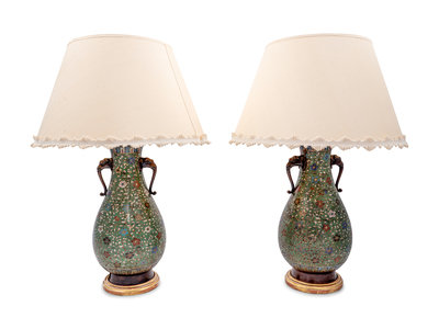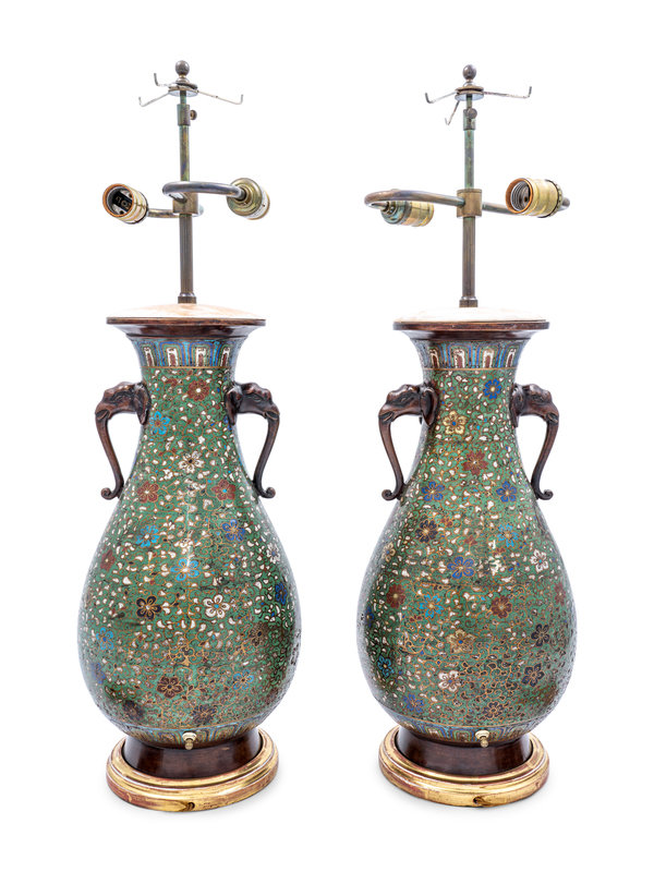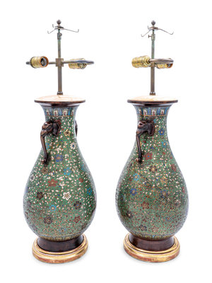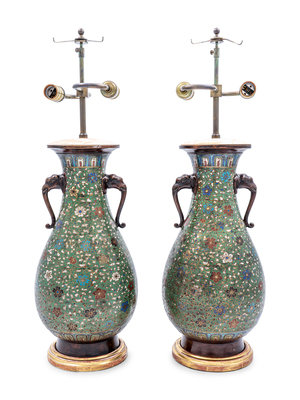 A Pair of Japanese Cloisonné Vases Mounted as Lamps
