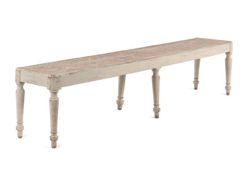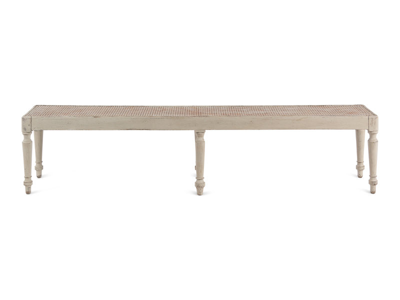 A Gustavian Style Grey-Painted Caned Bench