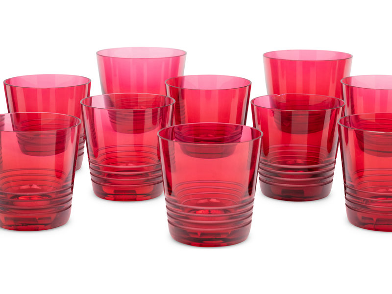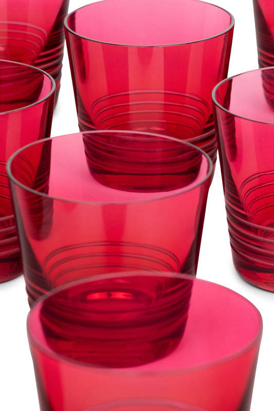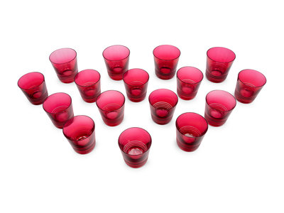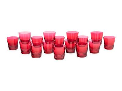 A Set of Sixteen Hermès Attelage Pink Glass Tumblers