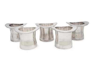 Five Ralph Lauren Silver-Plate 'Top Hat' Wine Coolers