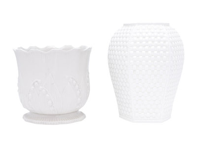 comprising a basket-form example designed by Sybil Connolly and made in Ireland, and a floral motif example made in Italy.