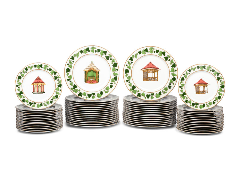 A Set of Pierre Frey for Limoges Les Gloriettes Porcelain Dinner and Salad Plates