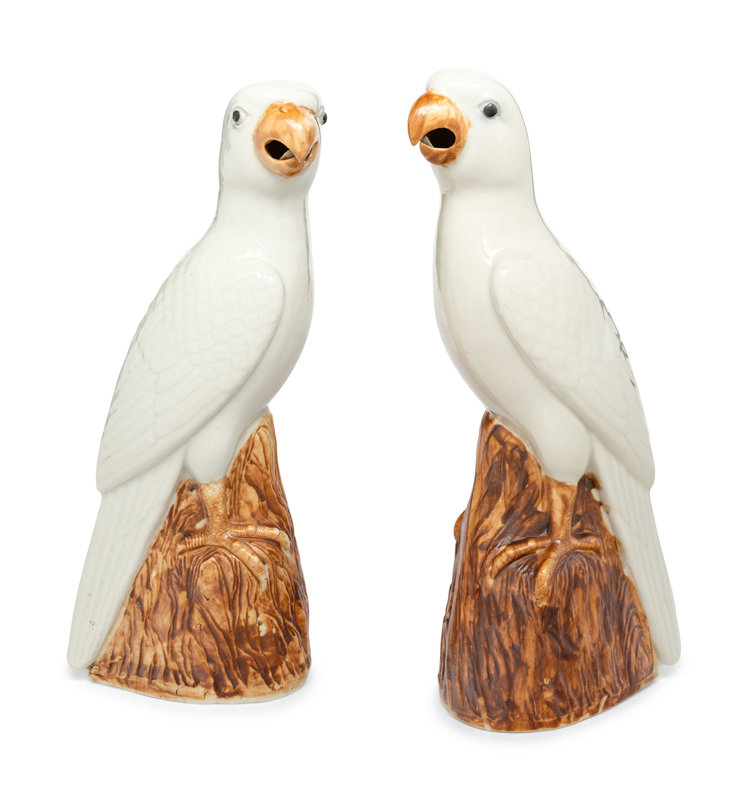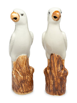 A Pair of Chinese Export Porcelain Parrots