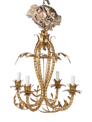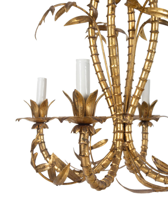 A Continental Gilt Metal Bamboo Form Four-Light Chandelier