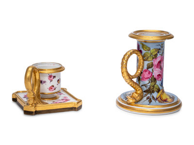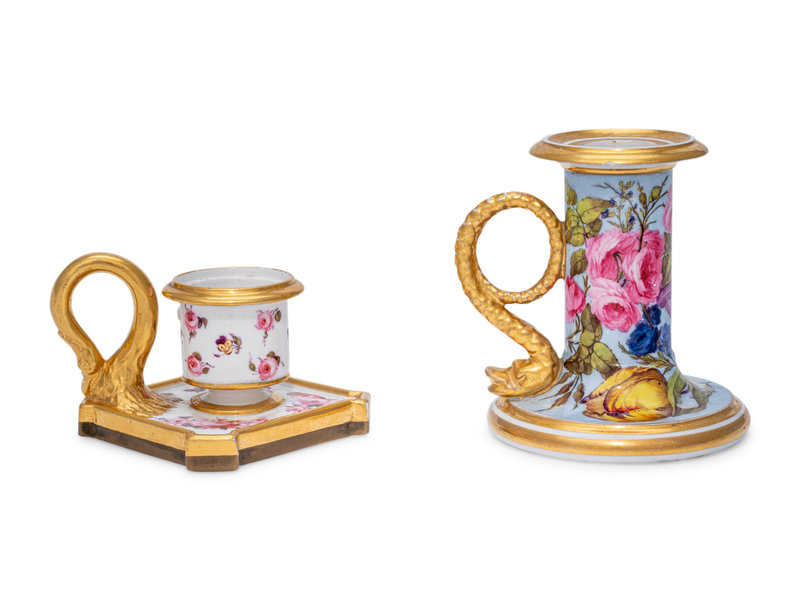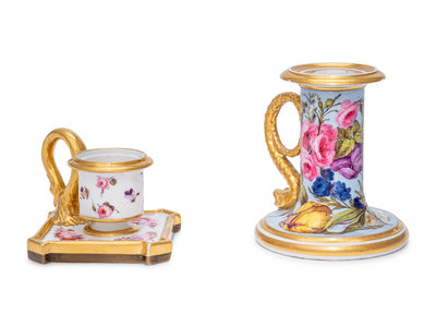 Two Worcester Porcelain Chamber Sticks