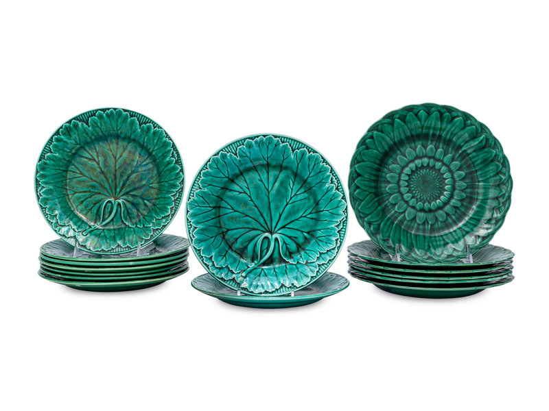 comprising a set of six Sunflower plates and a set of nine Cabbage Leaf plates, bearing various Wedgwood marks.