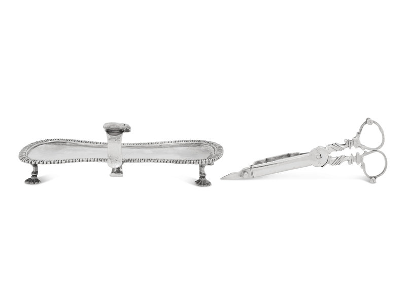 A George II Silver Wick Shears and Tray