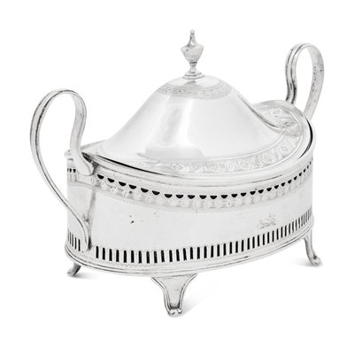 An Irish George III Silver Cobalt Glass-Lined Covered Dish