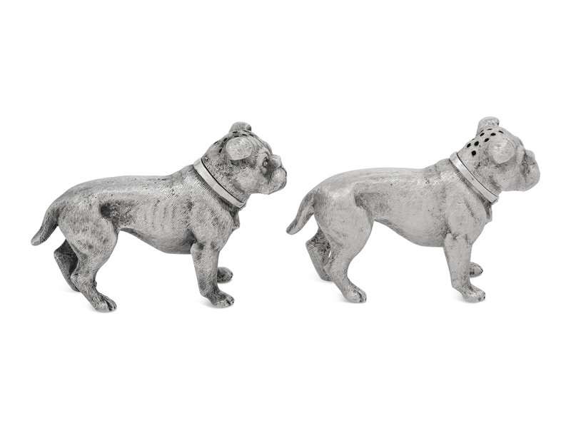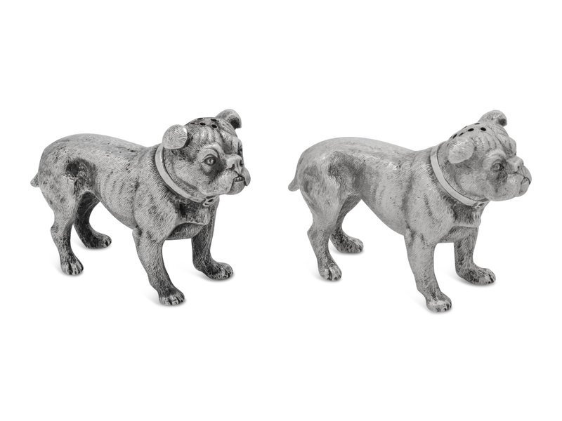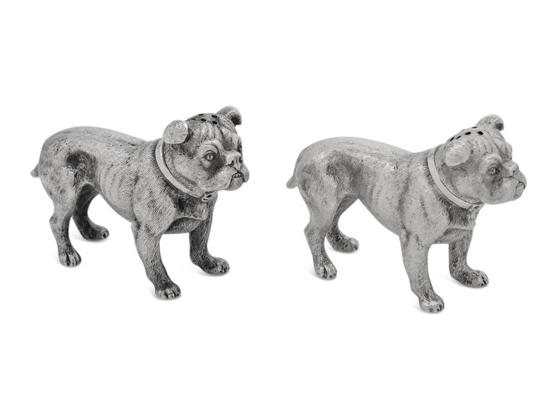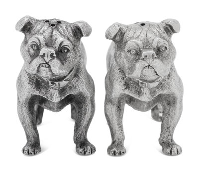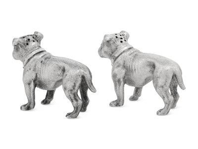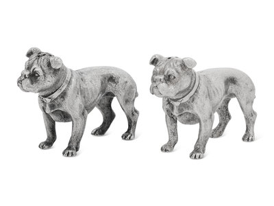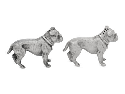 A Pair of Silver Salt and Pepper Shakers in the Form of Bulldogs