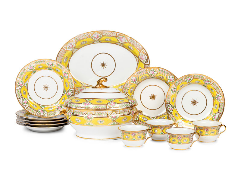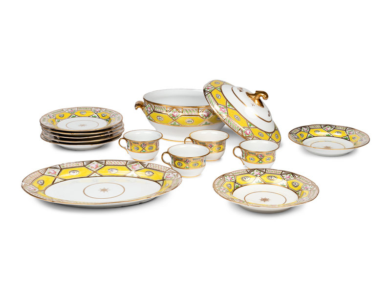 comprising six plates, two soup bowls of varying sizes, a tureen with underplate and four breakfast cups; 14 items total.