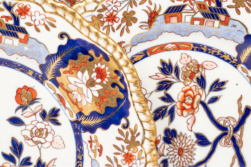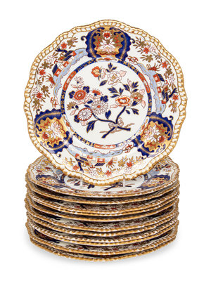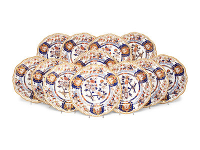 A Set of Twelve Spode Felspar Imari Dinner Plates