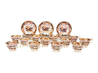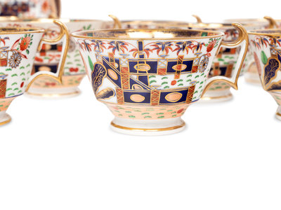 A Set of Twelve Spode Imari Style Porcelain Cups with Saucers