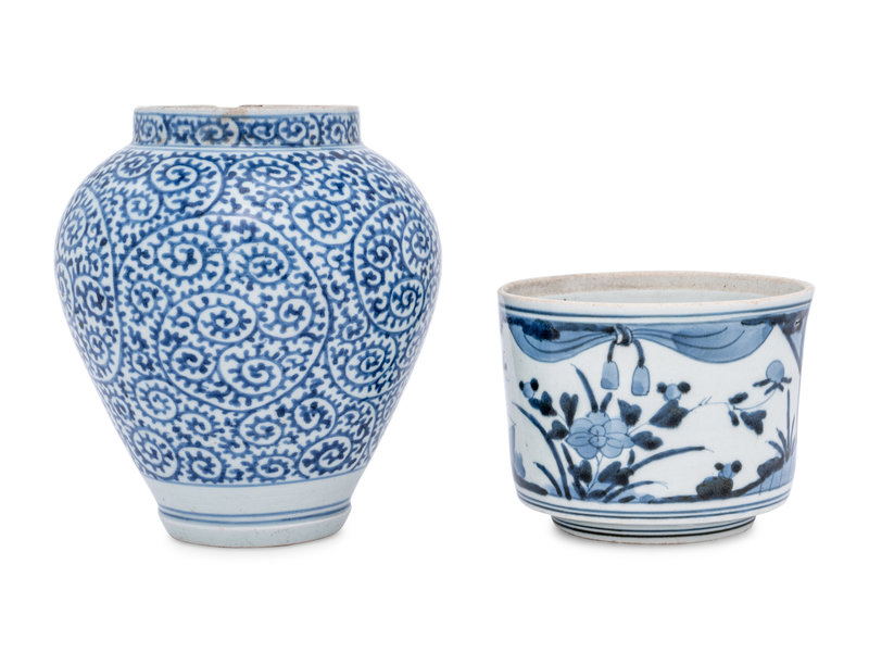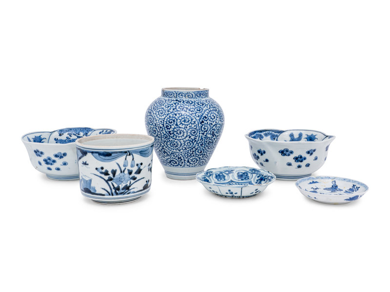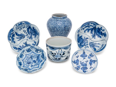 A Group of Six Chinese Blue and White Porcelain Articles
