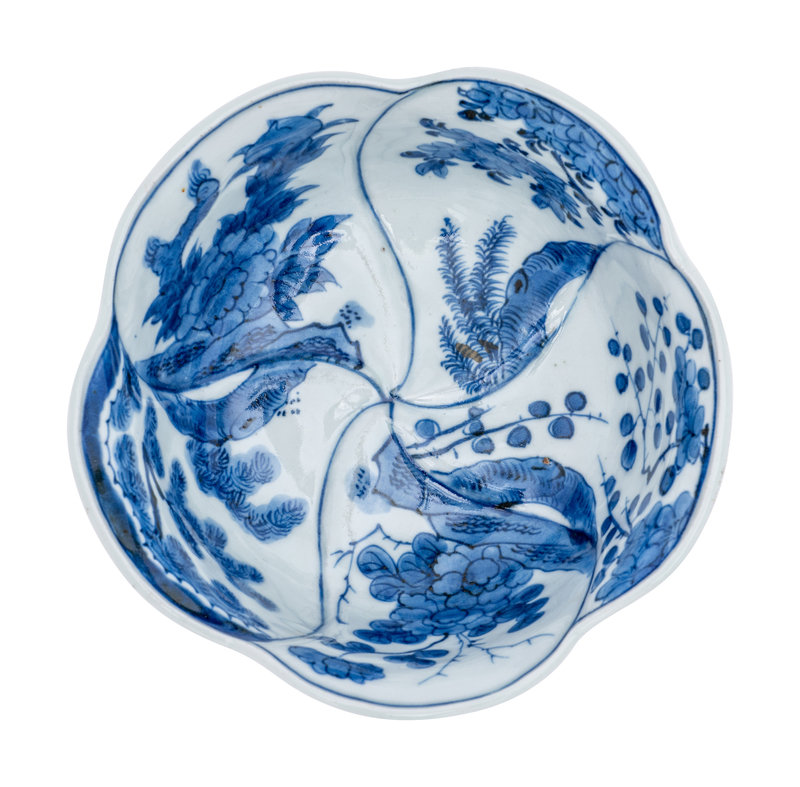 comprising a cache pot, vase, saucer, small dish and two lobed bowls.