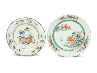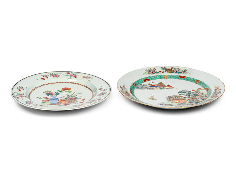 Two Chinese Export Enameled Porcelain Chargers
